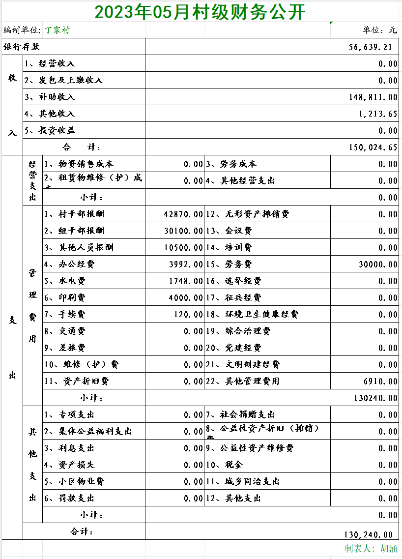 丁家村2023年05月村级财务公开