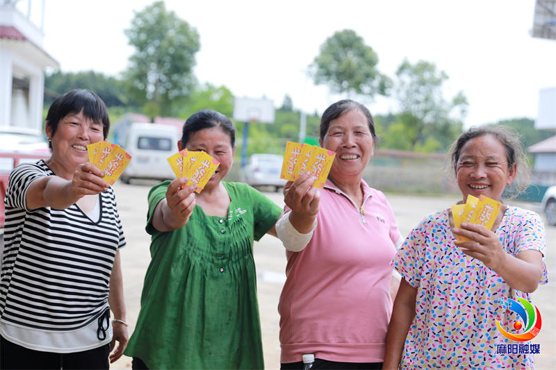 村民高兴展示所获积分卡