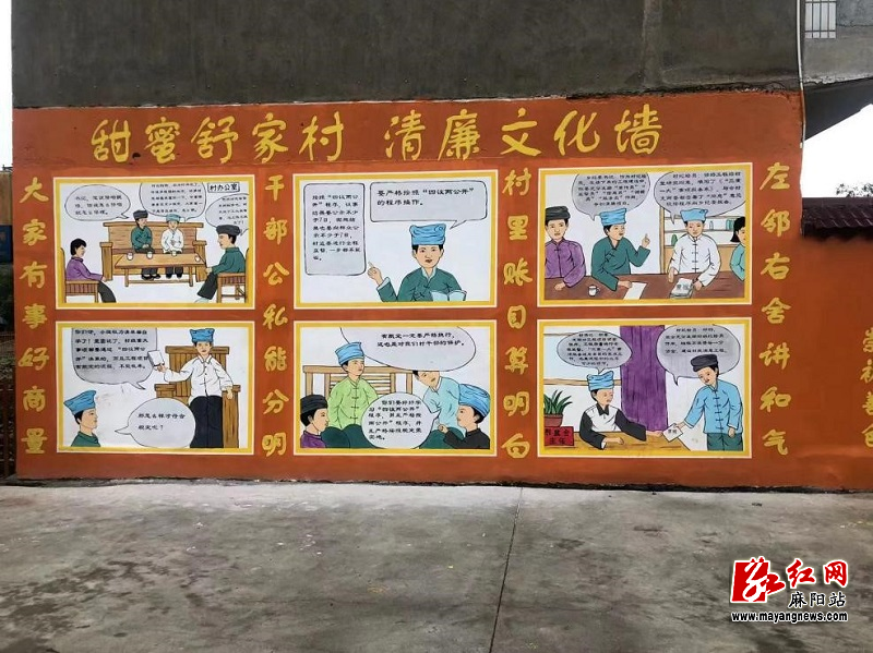 近日,舒家村乡主街道一幅幅形态鲜活、图文并茂的“文化墙”格外引人注目,暖褐色的红糖主题绘画细腻生动地勾勒出舒家村乡百年古法红糖的制作过程,简洁的四格画通俗易懂地展现了舒家村乡基层治理风貌,成为美丽乡村人居环境建设中一道靓丽的风景线。