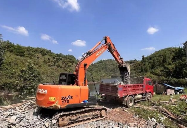 (图为:金顶湾水库违建渣土清场)